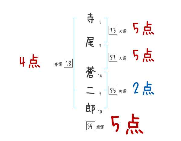 寺尾蒼二郎さんの画数の鑑定結果
