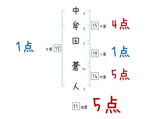 中牟田蒼人さんの画数の鑑定結果