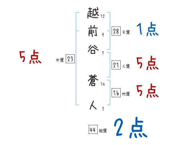 越前谷蒼人さんの画数の鑑定結果