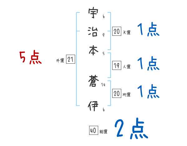 宇治本蒼伊さんの画数の鑑定結果