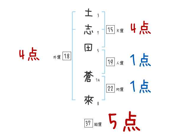 外運![]() | 土志田蒼來さんの外運は18画の4つ星!情熱的で剛気。忍耐力があり信頼される。 生活面を象徴する運勢です。外部から受ける影響力を表し、結婚運、家庭運や職場、環境への順応性を表します。 |
