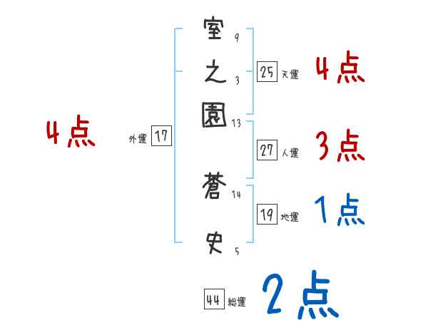 室之園蒼史さんの画数の鑑定結果