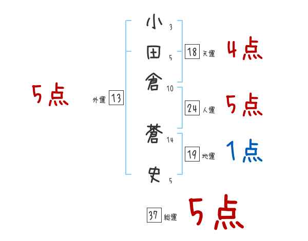 小田倉蒼史さんの画数の鑑定結果