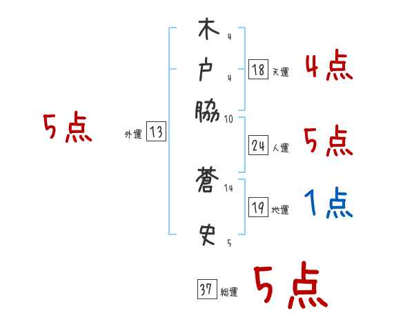 人運![]() | 木戸脇蒼史さんの人運は24画の5つ星!家庭運が良く順調な人生。金運にも恵まれる。 性格や才能などを表す2番目に重要な運勢です。人間関係や協調性、社会的な成功に影響します。主に20歳から50歳ぐらいまでの中年期の運勢を表します。 |