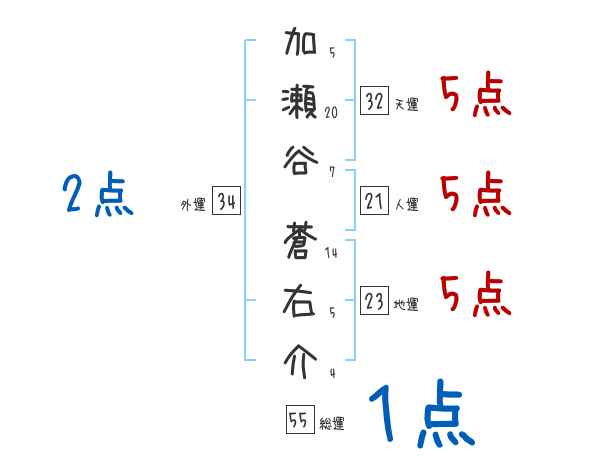 天運![]() | 加瀬谷蒼右介さんの天運は32画の5つ星!柔軟性があり成功する。チャンスが多く金運が良い。 家系が持つ宿命的な運勢を表します。祖先から受け継いだ苗字ですので自分の力が及びません。家柄を象徴します。 |