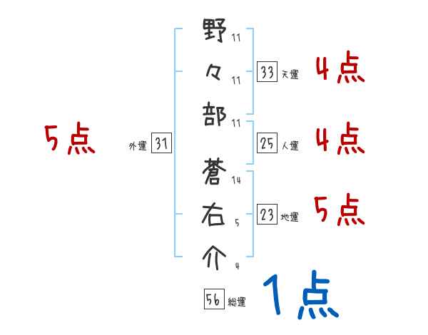 地運![]() | 野々部蒼右介さんの地運は23画の5つ星!想像力に優れ活力がある。一代で成功し名誉を手に入れる。 個性を表す基礎的な運勢です。性格形成や対人関係、行動力など家庭環境に影響されます。主に誕生してから20歳くらいまでの若年期の運勢を表します。 |