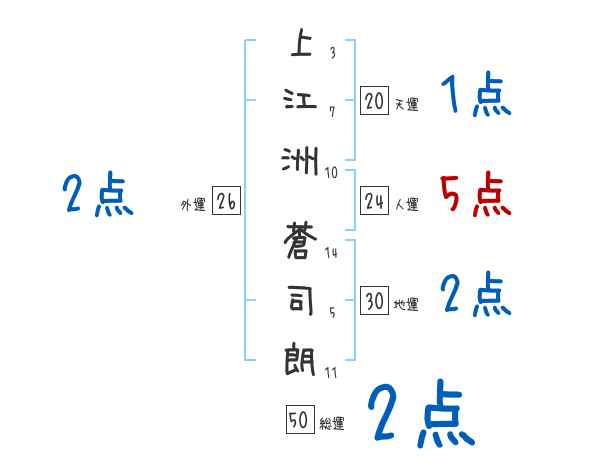 上江洲蒼司朗さんの画数の鑑定結果