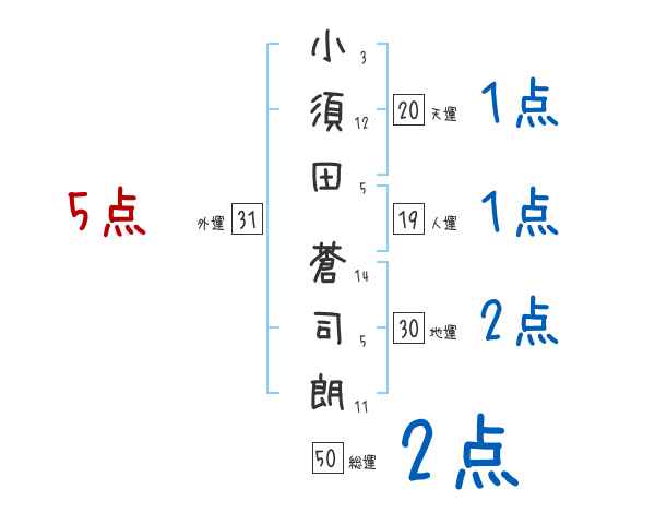 小須田蒼司朗さんの画数の鑑定結果