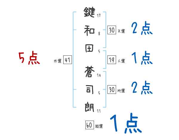 鍵和田蒼司朗さんの画数の鑑定結果
