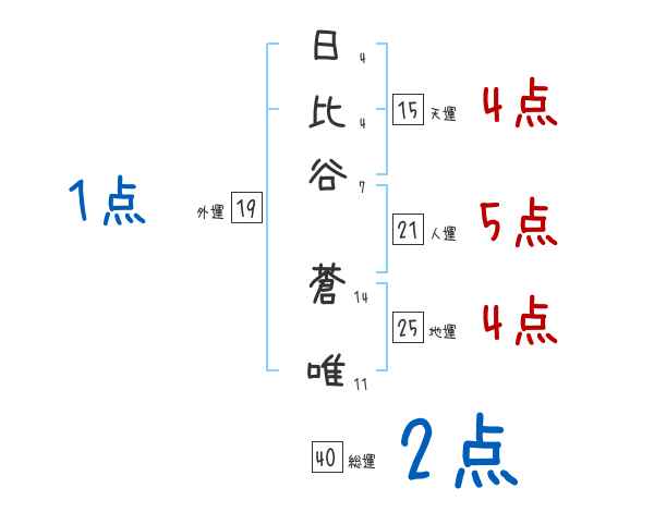 天運![]() | 日比谷蒼唯さんの天運は15画の4つ星!人徳があり出世する。順調に物事を進め円満な人生。 家系が持つ宿命的な運勢を表します。祖先から受け継いだ苗字ですので自分の力が及びません。家柄を象徴します。 |