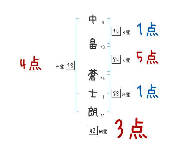 総運![]() | 中畠蒼士朗さんの総運は42画の3つ星!病気に注意。多芸であるが消極的でおとなしい。 あなたの人生を表す1番重要な運勢です。生涯を通じて影響する総合運となり、主に50歳以降の晩年期に影響を及ぼします。 |