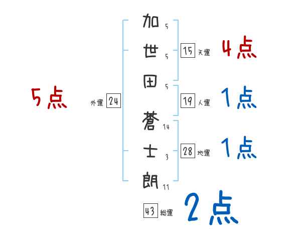 加世田蒼士朗さんの画数の鑑定結果