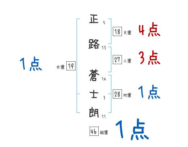 外運![]() | 正路蒼士朗さんの外運は19画の1つ星!優れた才能を持ちますが、協調性が足りないことも。周りの人と協力する事を意識しましょう。 生活面を象徴する運勢です。外部から受ける影響力を表し、結婚運、家庭運や職場、環境への順応性を表します。 |