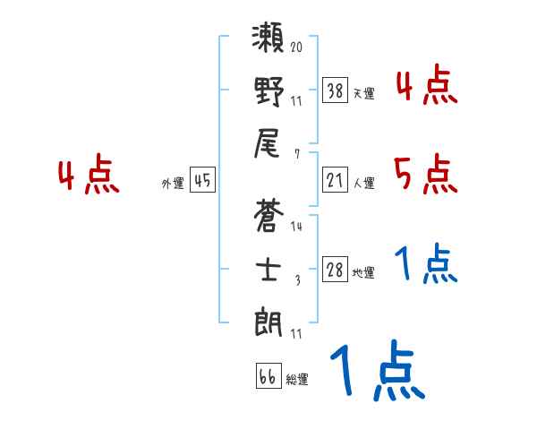 瀬野尾蒼士朗さんの画数の鑑定結果