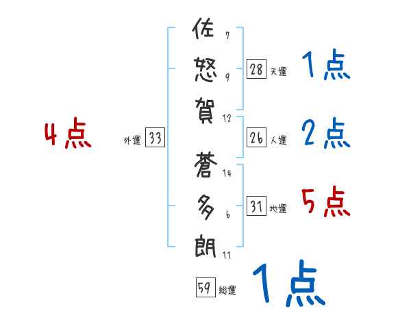 佐怒賀蒼多朗さんの画数の鑑定結果