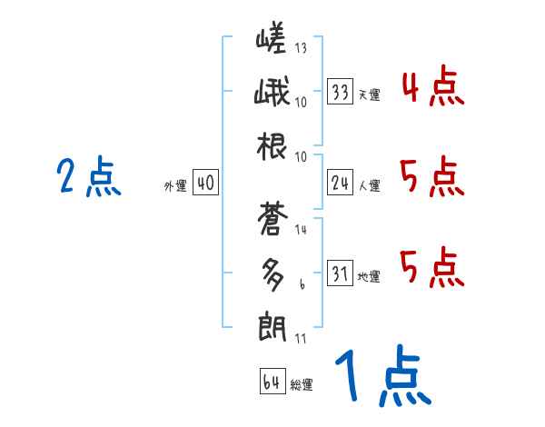 嵯峨根蒼多朗さんの画数の鑑定結果