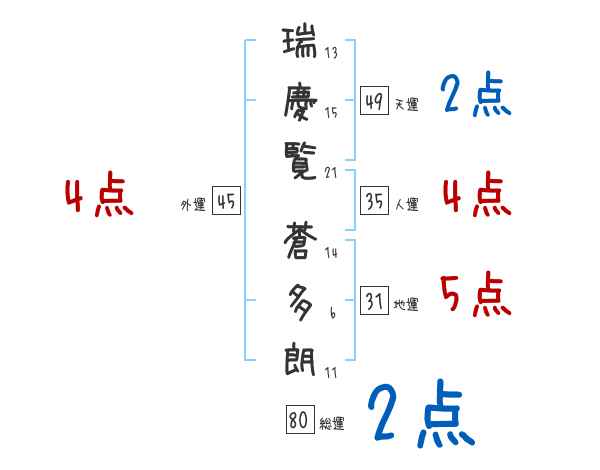 瑞慶覧蒼多朗さんの画数の鑑定結果