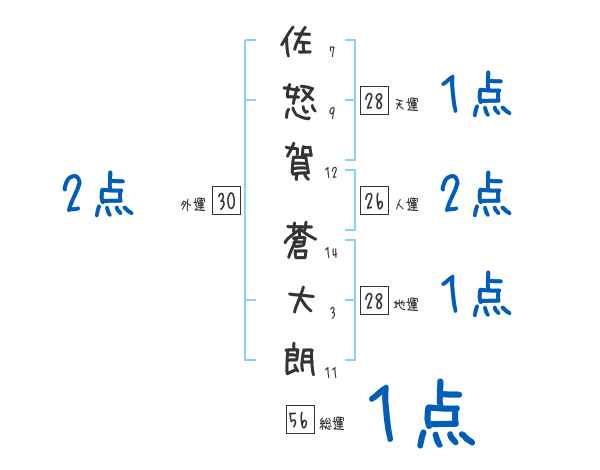 佐怒賀蒼大朗さんの画数の鑑定結果