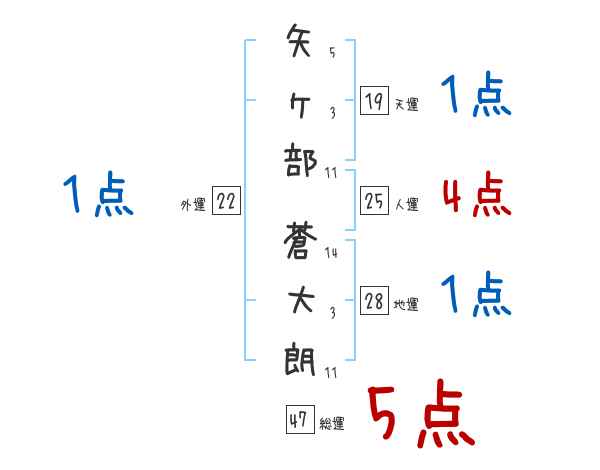 矢ヶ部蒼大朗さんの画数の鑑定結果