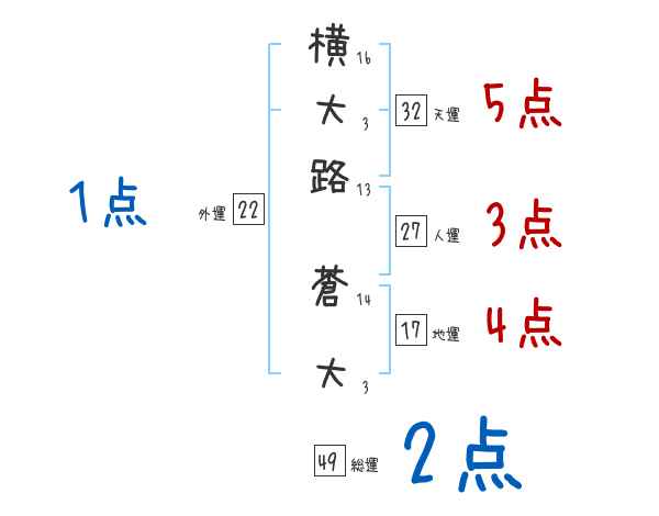 天運![]() | 横大路蒼大さんの天運は32画の5つ星!柔軟性があり成功する。チャンスが多く金運が良い。 家系が持つ宿命的な運勢を表します。祖先から受け継いだ苗字ですので自分の力が及びません。家柄を象徴します。 |