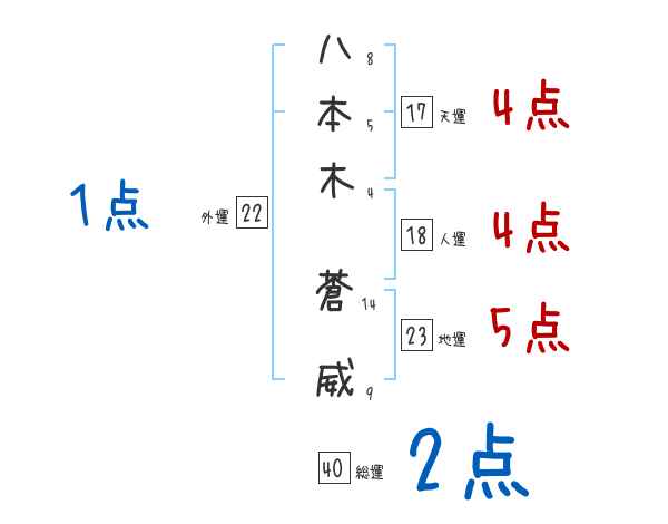 八本木蒼威さんの画数の鑑定結果