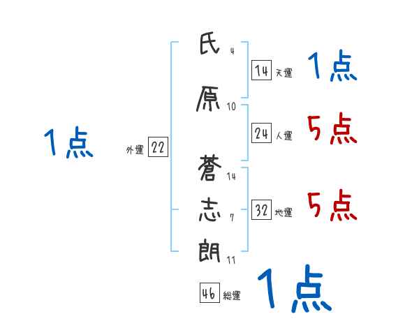 天運![]() | 氏原蒼志朗さんの天運は14画の1つ星!人に対して優しいがストレスを溜め込みがち。人間関係のトラブルを避けるよう気をつけましょう。 家系が持つ宿命的な運勢を表します。祖先から受け継いだ苗字ですので自分の力が及びません。家柄を象徴します。 |