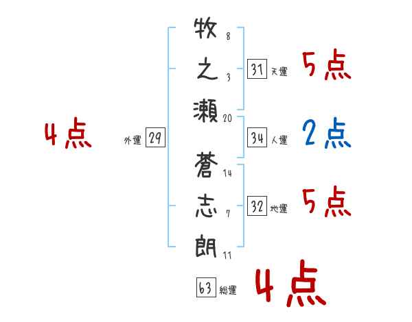 牧之瀬蒼志朗さんの画数の鑑定結果