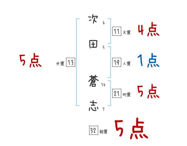 次田蒼志さんの画数の鑑定結果