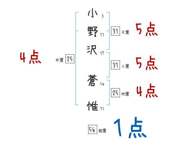 小野沢蒼惟さんの画数の鑑定結果