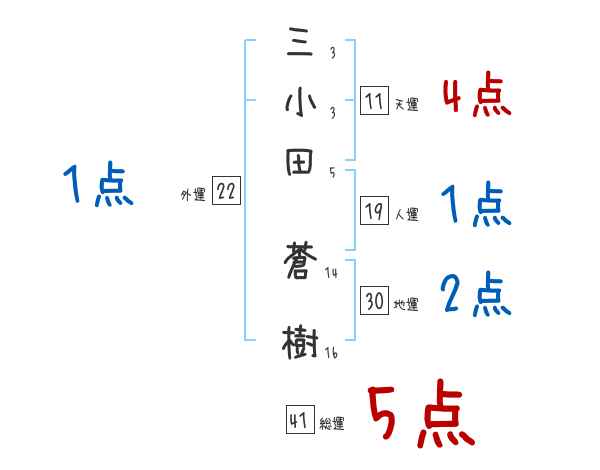 三小田蒼樹さんの画数の鑑定結果
