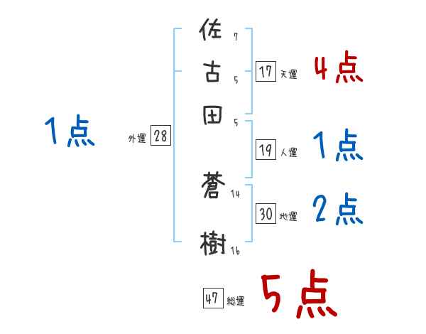 佐古田蒼樹さんの画数の鑑定結果