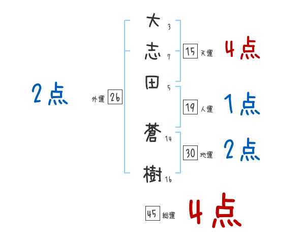 天運![]() | 大志田蒼樹さんの天運は15画の4つ星!人徳があり出世する。順調に物事を進め円満な人生。 家系が持つ宿命的な運勢を表します。祖先から受け継いだ苗字ですので自分の力が及びません。家柄を象徴します。 |