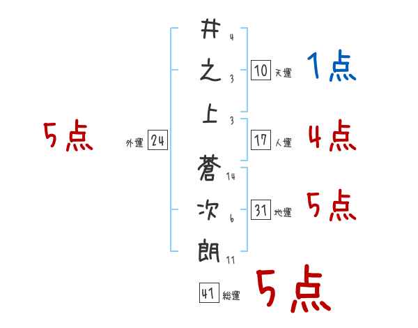 井之上蒼次朗さんの外運は24画の5つ星