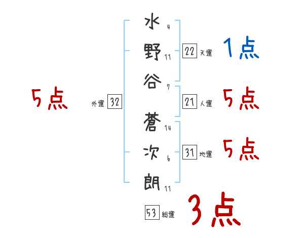 水野谷蒼次朗さんの画数の鑑定結果
