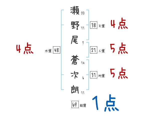 瀬野尾蒼次朗さんの画数の鑑定結果