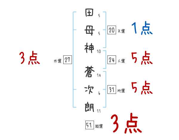 田母神蒼次朗さんの画数の鑑定結果