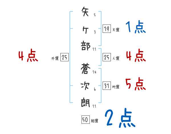 矢ヶ部蒼次朗さんの画数の鑑定結果