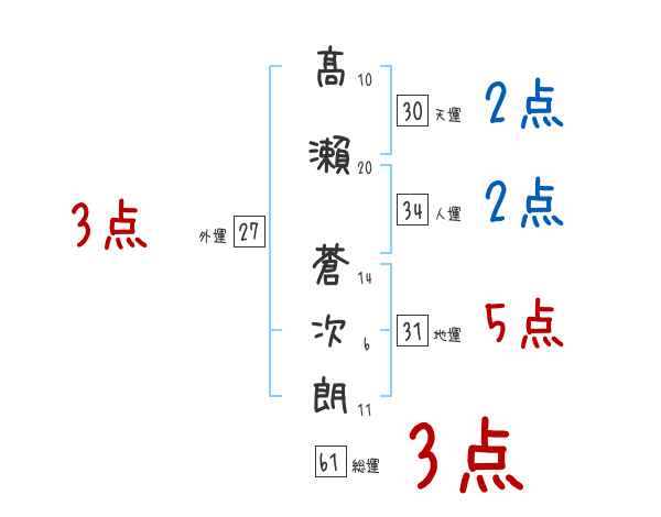 髙瀨蒼次朗さんの画数の鑑定結果