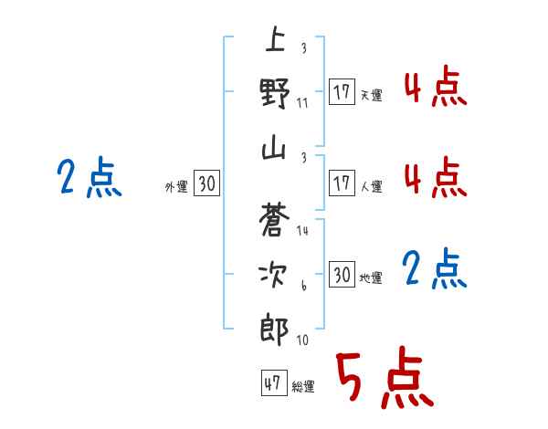 地運![]() | 上野山蒼次郎さんの地運は30画の2つ星!浮き沈みの激しさに注意しましょう。 個性を表す基礎的な運勢です。性格形成や対人関係、行動力など家庭環境に影響されます。主に誕生してから20歳くらいまでの若年期の運勢を表します。 |