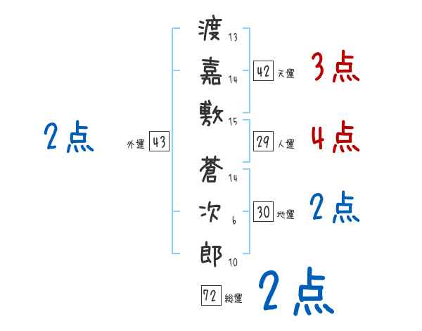 渡嘉敷蒼次郎さんの画数の鑑定結果