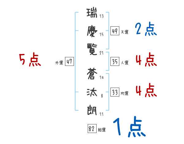 瑞慶覧蒼汰朗さんの画数の鑑定結果