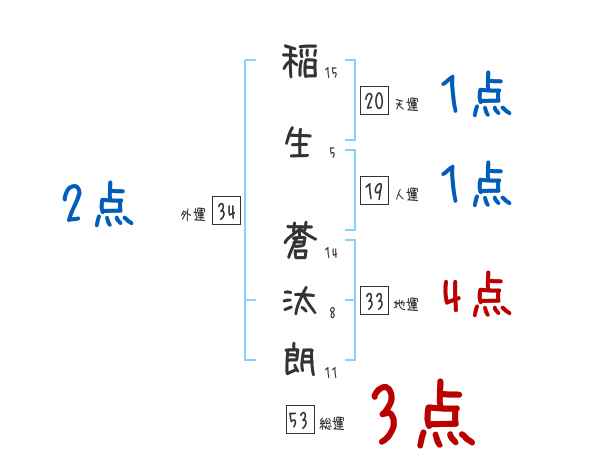 稲生蒼汰朗さんの画数の鑑定結果