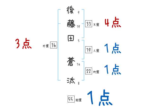 外運![]() | 後藤田蒼汰さんの外運は36画の3つ星!先見性が豊かです。多少神経質で苦労することも。 生活面を象徴する運勢です。外部から受ける影響力を表し、結婚運、家庭運や職場、環境への順応性を表します。 |