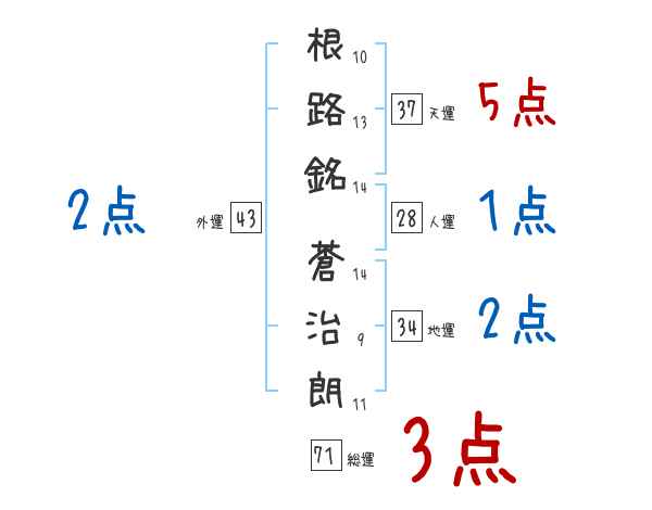 天運![]() | 根路銘蒼治朗さんの天運は37画の5つ星!努力家で順応性に優れる。現実的な考え方ができ忠実に物事をこなす。 家系が持つ宿命的な運勢を表します。祖先から受け継いだ苗字ですので自分の力が及びません。家柄を象徴します。 |