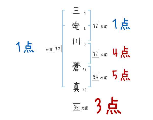 総運![]() | 三宅川蒼真さんの総運は36画の3つ星!先見性が豊かです。多少神経質で苦労することも。 あなたの人生を表す1番重要な運勢です。生涯を通じて影響する総合運となり、主に50歳以降の晩年期に影響を及ぼします。 |
