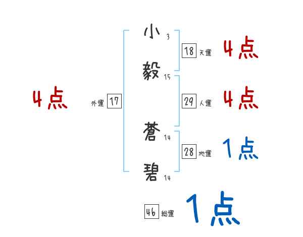 小毅蒼碧さんの画数の鑑定結果