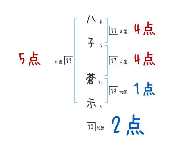八子蒼示さんの画数の鑑定結果