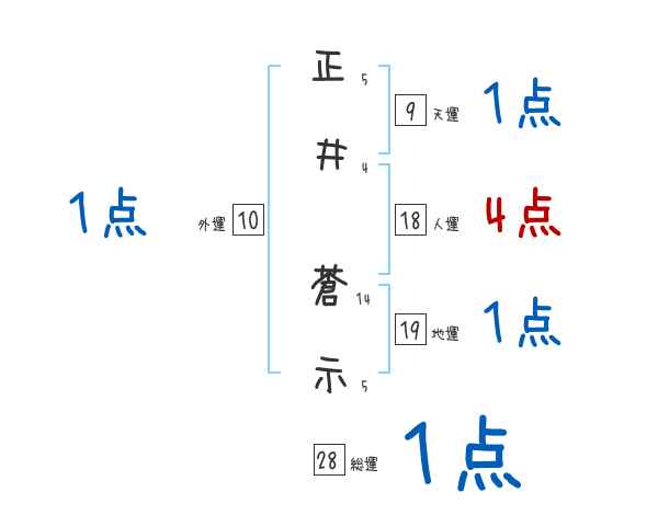 正井蒼示さんの画数の鑑定結果