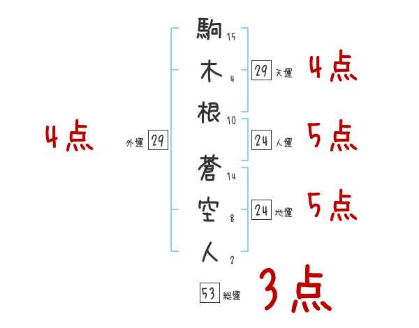 駒木根蒼空人さんの画数の鑑定結果