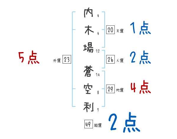 総運![]() | 内木場蒼空利さんの総運は49画の2つ星!不安定な性格で明暗がある人生。周りの人には支援されやすい。 あなたの人生を表す1番重要な運勢です。生涯を通じて影響する総合運となり、主に50歳以降の晩年期に影響を及ぼします。 |
